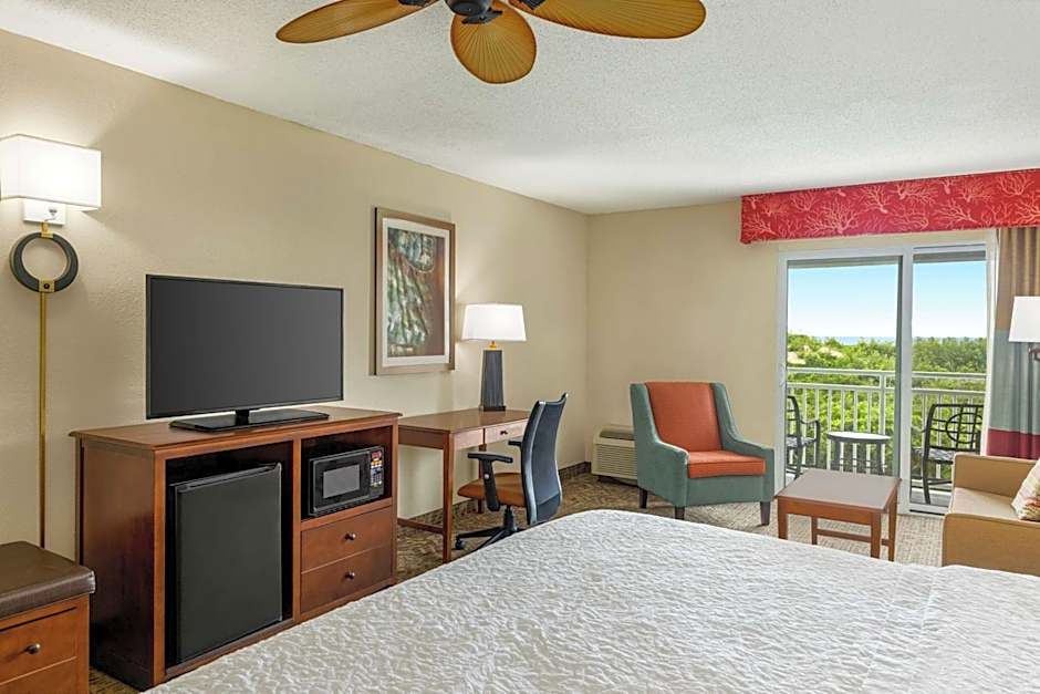This suite features a sofa bed and private balcony with views of the ocean. A microwave, small refrigerator and cable TV are also available.
