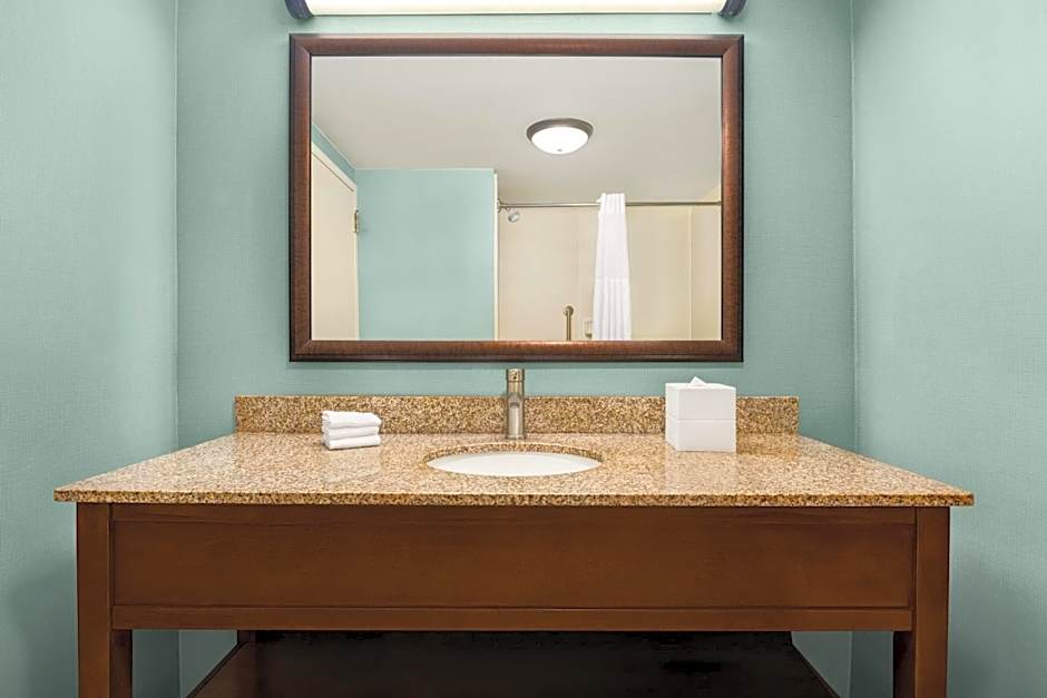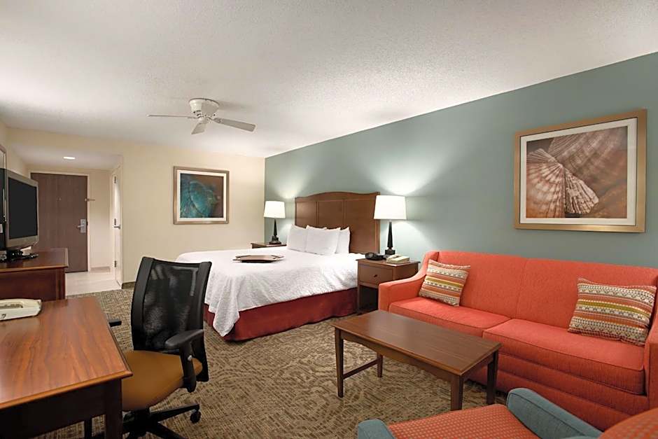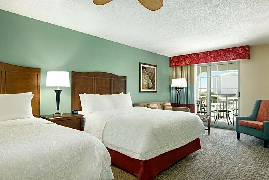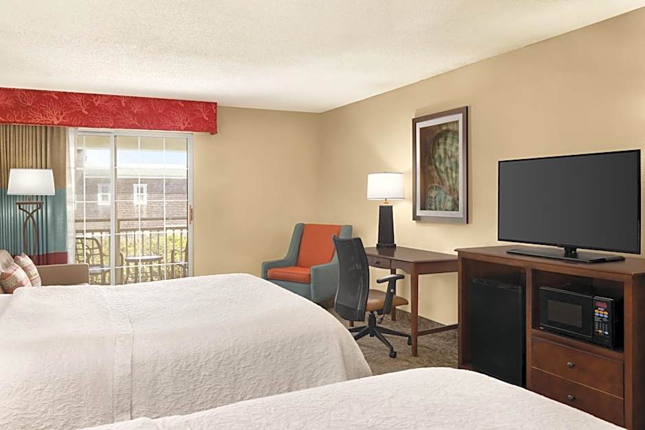 Any corresponding photo may not reflect the specific accessible room type or room feature. This spacious, non-ocean view room features a private patio so you can soak up some sun. Enjoy two queen beds with Hampton Inn's exclusive clean and fresh Hampton bed; wake up with an easy-to-use alarm clock and in-room coffeemaker. Stay connected with our free high-speed wireless internet access and the added convenience of a microwave and refrigerator. Our unique shower design provides more space and light; like all of our accommodations, it will feature a hairdryer and WaterPik showerhead. Our studio suite guest rooms include a 32" flat-screen LCD HDTV with free HBO and access to our Lodgenet pay-per-view entertainment system. You'll also have a full-sized sleeper sofa, iron, ironing board, ceiling fan, air conditioner with thermostat, and two phones complete with data ports, dual phone lines, voicemail and free local calls. This room is non-smoking.